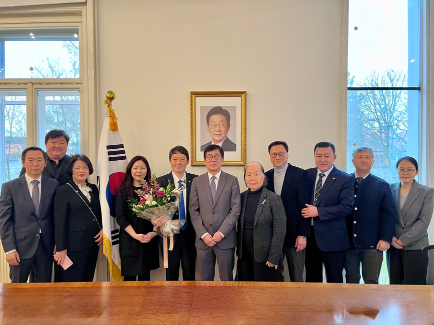 함 대사는 수상을 축하하기 위해 모인 민주평통 자문위원 및 한인연합회 관계자들과 면담을 갖고, 오스트리아 동포사회 발전에 관한 의견을 교환하였습니다.